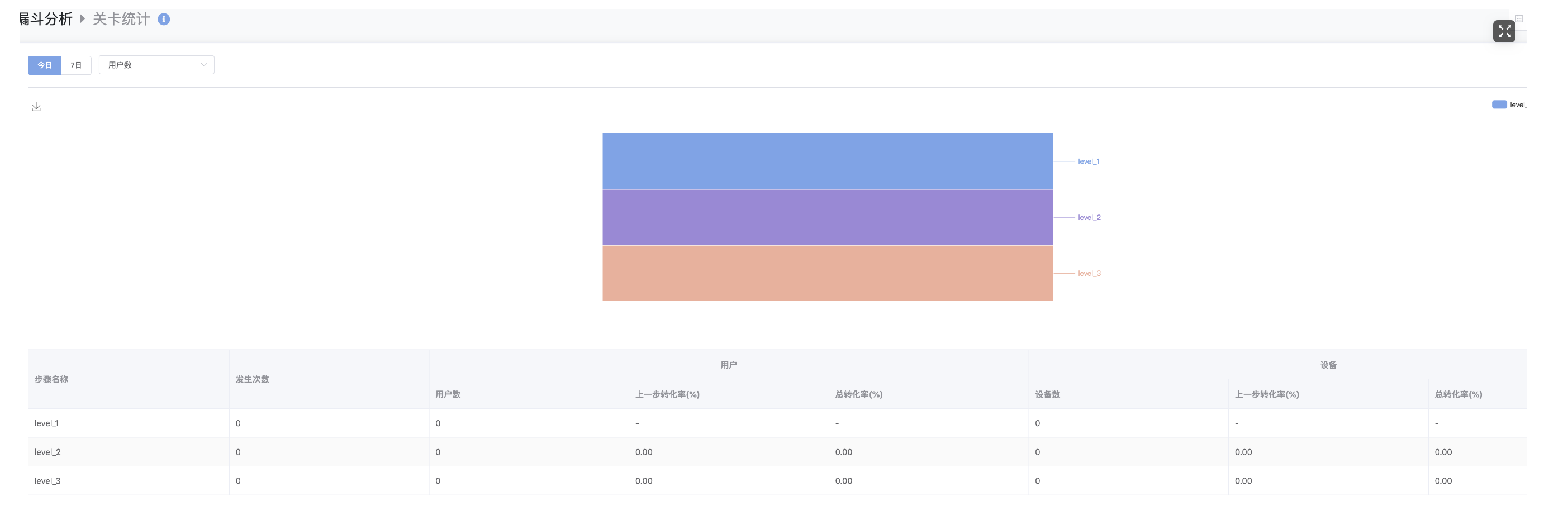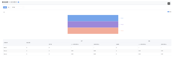 当前的后台工具,是否能支持查看具体每一关的转化比例(因为目前小游戏大多是以推关卡形式的,能够具体观察到某一关到流失比例,对调产品很重要),当前的这个后台好像并不能很直观的看到。如果是使用漏斗到方式,如果关卡有100关甚至更多,应该不支持吧。