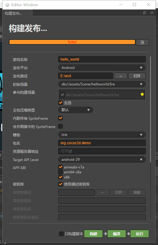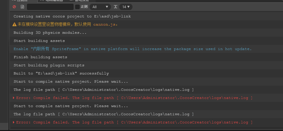 正在执行:’“E:\Build\jsb-link\frameworks\runtime-src\proj.android-studio\gradlew.bat” --parallel --info assembleRelease’