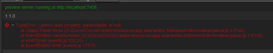 Simulator : Get data from file(D:/GameDevelop/cocos/CocosCreator_v1.1.0-rc1_2016052701/CocosCreator/resources/cocos2d-x/simulator/config.json) failed, error code is 2