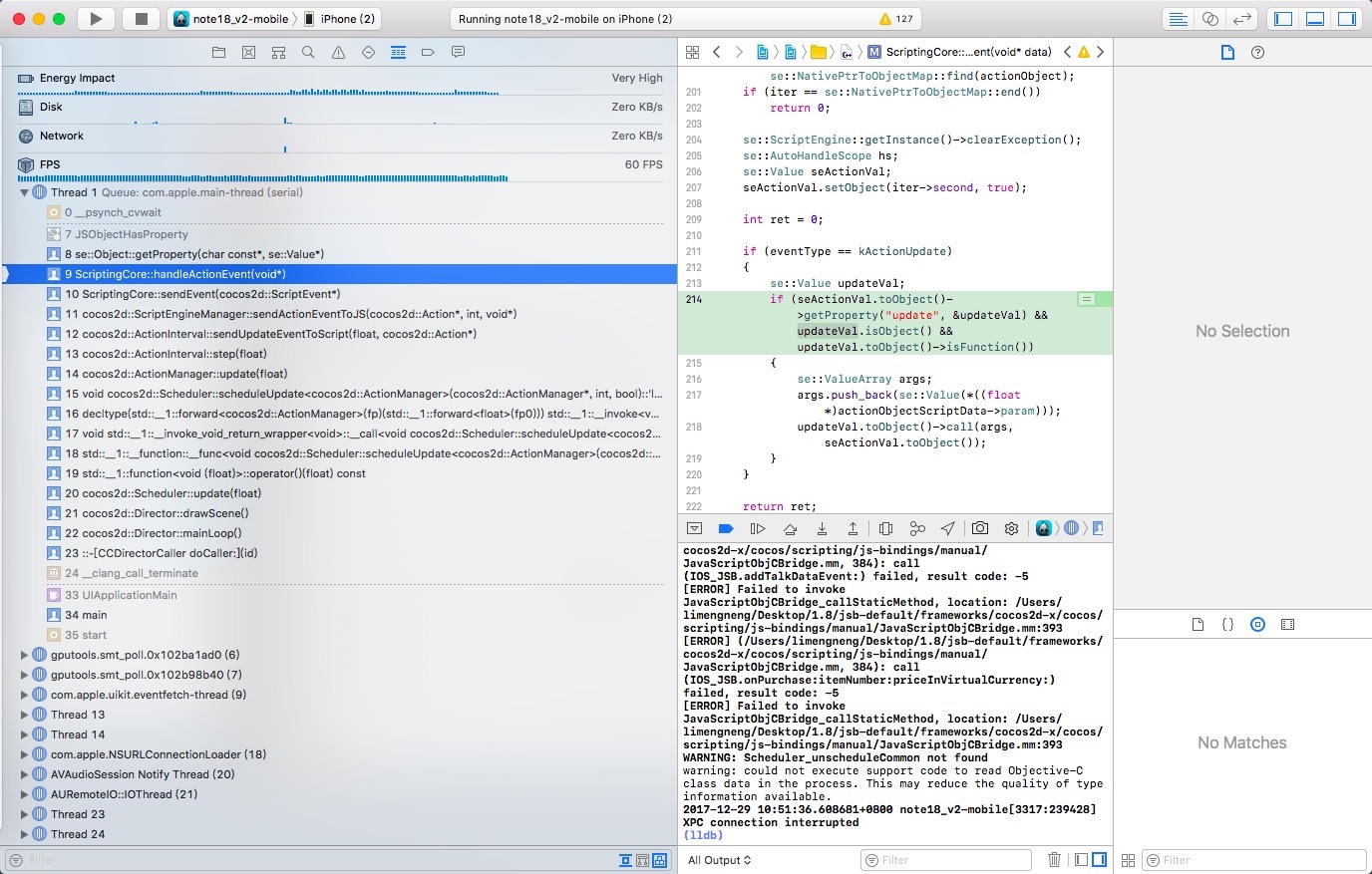 cocos creator 1.8 手机连接xcode运行正常 但是出包后运行有时会崩溃