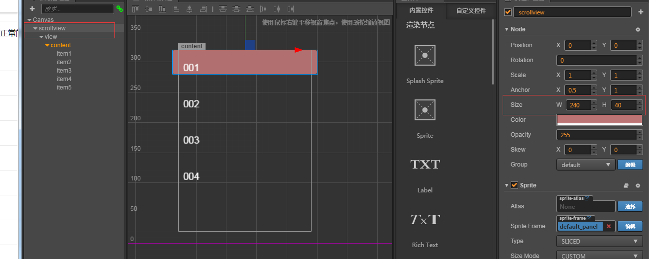 scrollview的height我设置的很小(图中粉红区域),添加的5个item节点里面,item3和item5各自添加了一个button点击事件,item124都只是普通的节点。当我滑动的时候,只有手指落在scrollview区域(即图中粉红区域)或者落在拥有点击事件的item(即item3,item5)上才可滑动。落在粉红区域外且没有点击事件的节点上无法滑动。