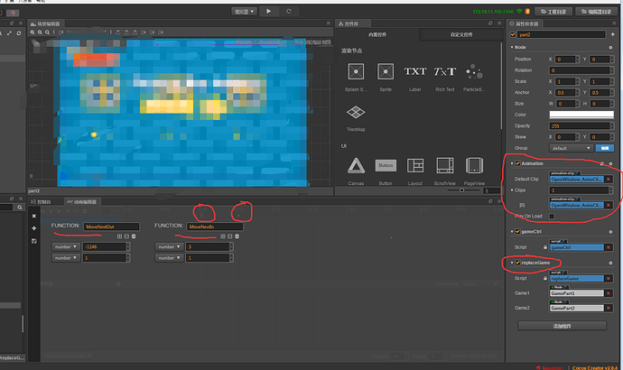 1.8-1.9的版本都正常功能,升级到2.0.4后,原来的Animation动画中的添加的事件帧,无法回调自定义的脚本函数。查了很久,无任何报错或者和这个功能相关的什么警告等 。之前老版本动画组件和脚本组件再同一个节点下,老版本没有问题。新版本我也尝试过将动画放到子节点,回调函数的JS脚本在父节点。 依旧不行,不知道有没有朋友遇到和我一样的情况,请帮忙指教,十分感谢!!! 见图一些遇到的情况如下: