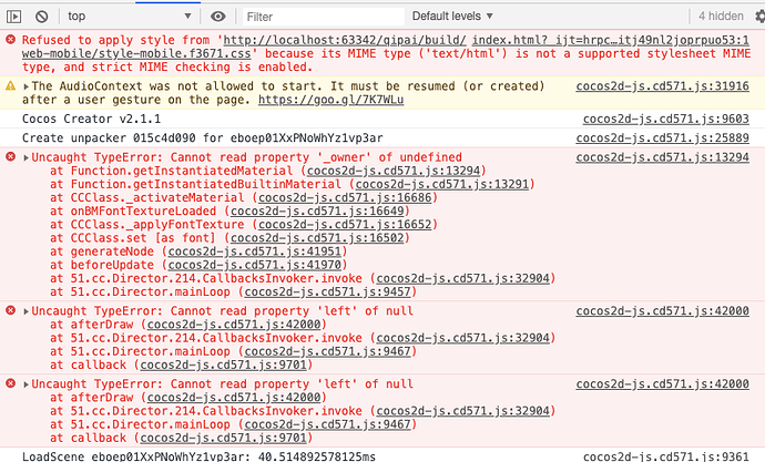 大家好!之前用2.1 打包web-mobile都没问题,升级cocos creator 2.1.1后,打包运行就报错,请问是什么原因引起的