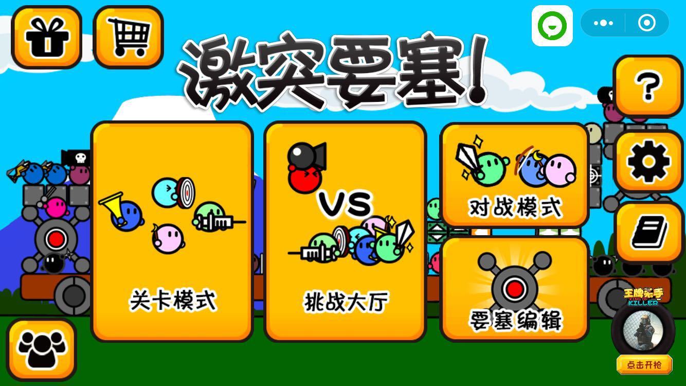《激突要塞》是一款非常Q萌可爱的休闲益智游戏。玩家可以用各种各样的小人来进行战斗,将它们设置在不同的位置将会起到不同的作用。努力攻陷敌人的要塞,将敌人一网打尽,是一款具有策略性的对战游戏!原作是由日本独立游戏制作人铃木康之先生制作的经典策略类竞技游戏。游戏以简单的操作,烧脑的配搭,多样自由的竞技给我们带来无限的乐趣。我们从原作者手中获得了《激突要塞》的授权,移植到了微信小游戏上。