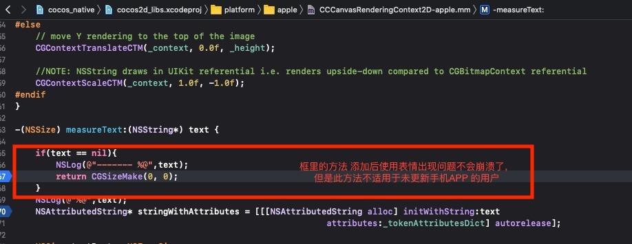 崩溃问题是解决了,但是我现在输入多行内容都是表情的时候, 第二行的表情可能丢失,也有可能是正常的,做为空判断只能解决不崩溃的问题 ,多行的时候在安卓iOS都有可能不显示系统表情加粗文字