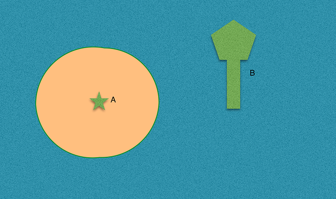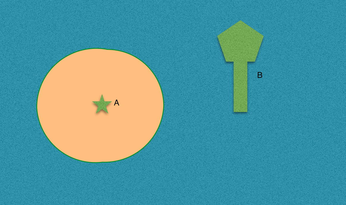 当A(主角)在图一时,看不到 B(树木),当主角走到 图二处时可以看到部分 B的样子