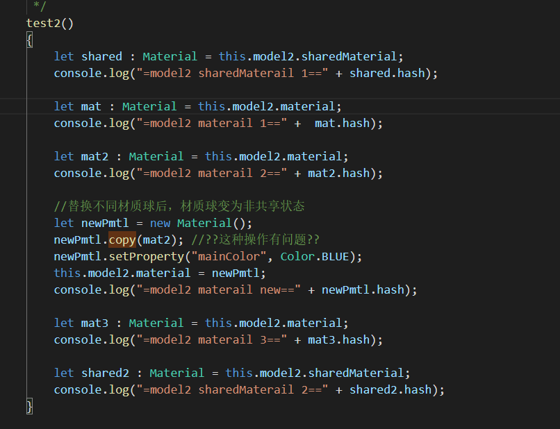 通过Material.copy()方法重新赋值ModelComponent的material属性,打印结果尽然是material的hashcode没变,sharedMaterial的hashcode变了,啥原因?