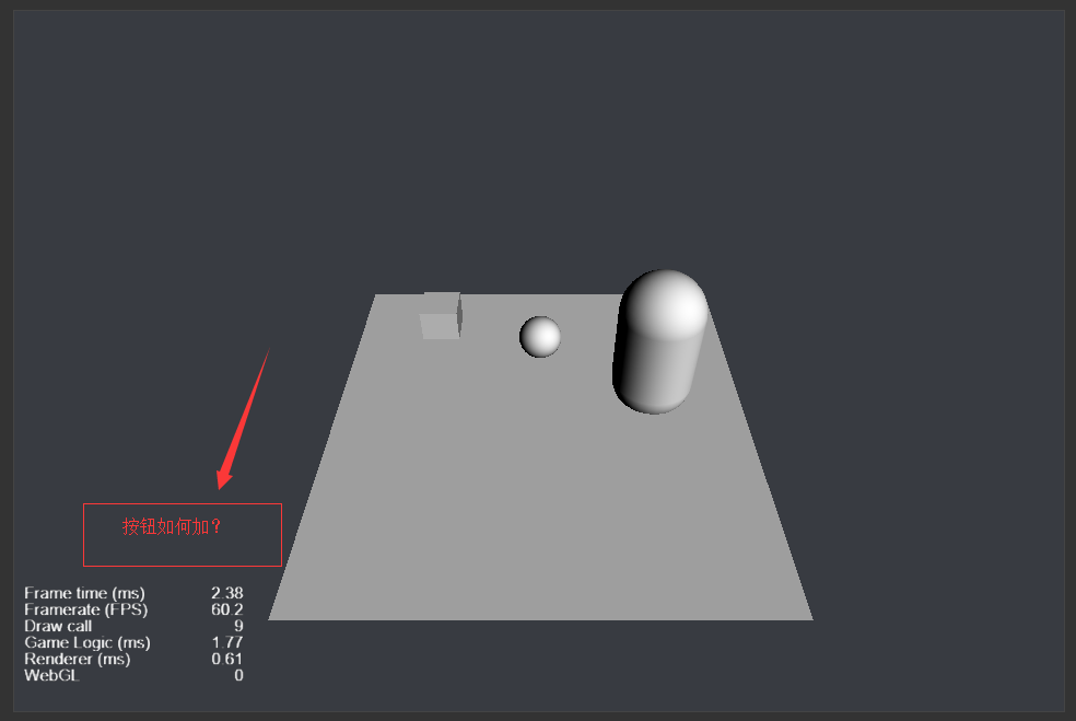 如何在这个3d场景中加按钮,用来控制3d物体的?