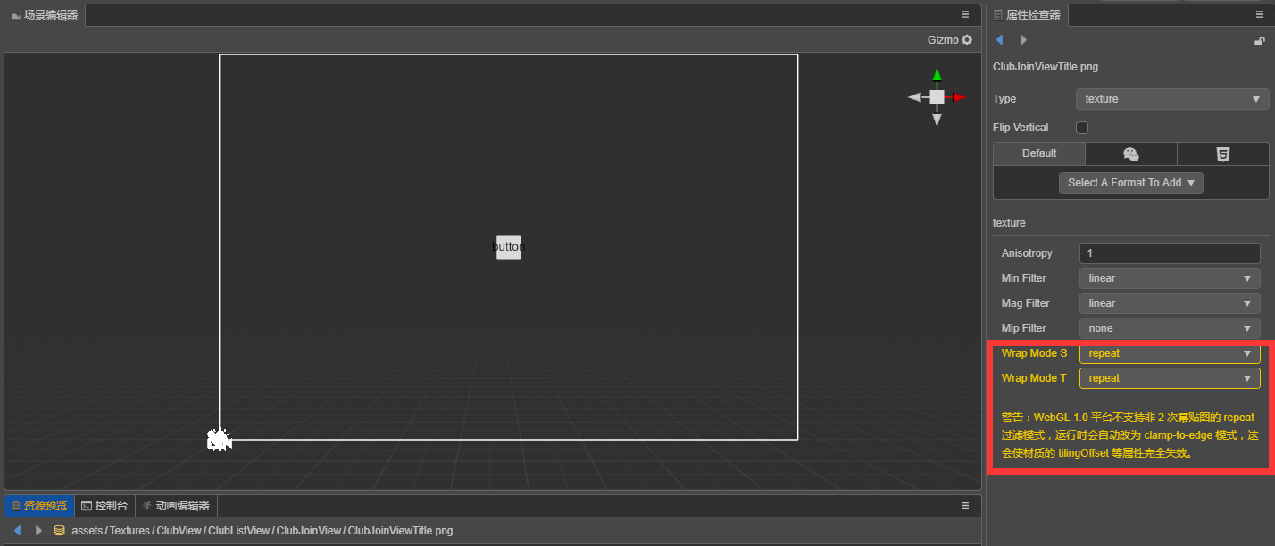 精灵无法只用导入的图片,属性检查器这里有一个警告