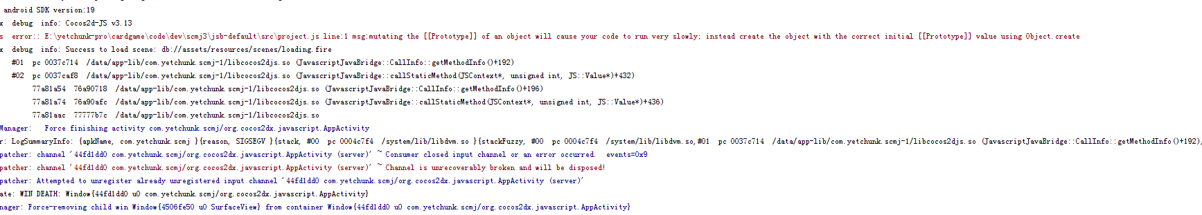 看那个project.js的报错,应该就是它导致的闪退。cocos creator有办法生成project.js, 而不是project.jsc吗?