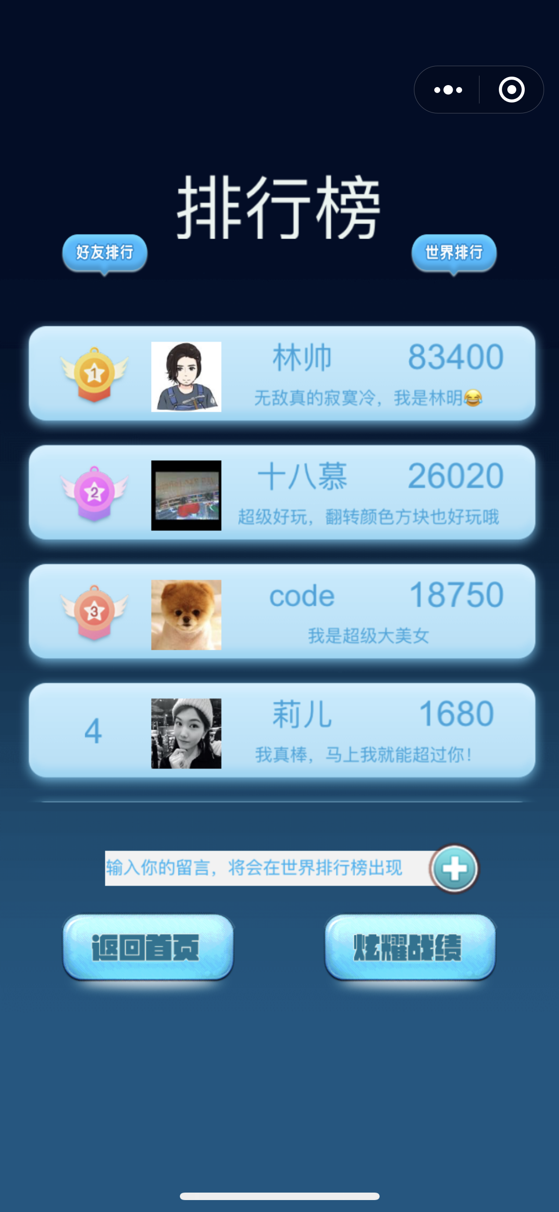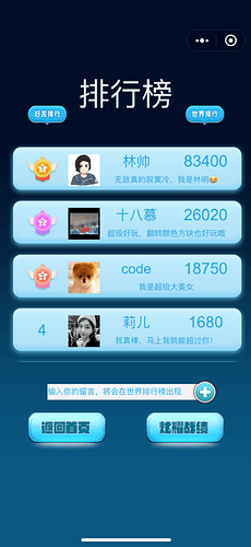 新加了一个个性签名,在排行榜可以输入留言展示在排行榜上,并做了字符限制