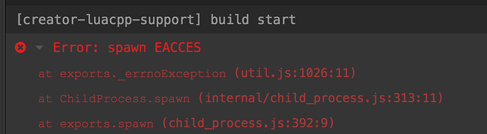 一直在关注creator对lua的支持,现在遇到一个问题,creator1.5 mac版本在使用luacpp support插件导出的时候报错: