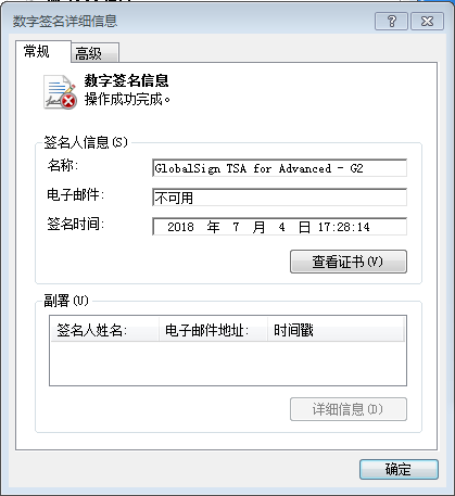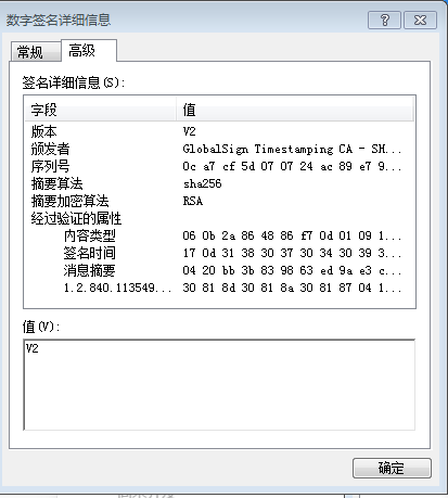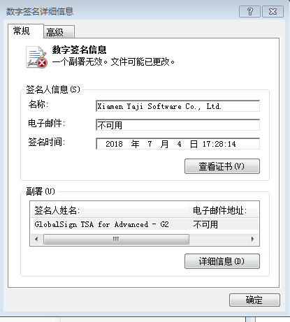 2,将问题路径下的cab文件右键查看属性,选择数字签名,可以看到有一个副属不正确,很容易可以找到这个副属证书,最后发现是一个名叫globalsign的证书没有颁发者。