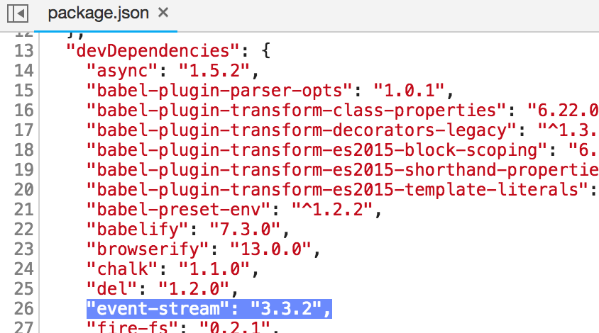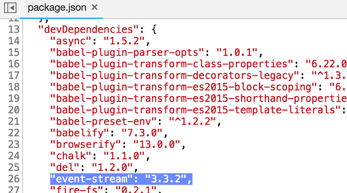 你得先确认 Event-stream 版本,我们引擎应该是限制了版本内容正好没有被植入后门哦。。。
