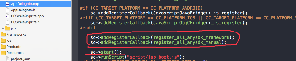 试过IOS接入的时候src文件夹下的两个文件也添加到了project.json里面