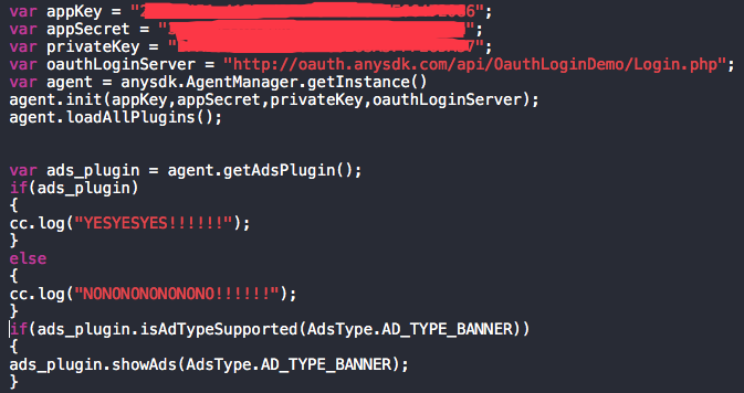 cocos creator版本1.0.3,anysdk版本2.1.2,参照官方文档的cocos-js的IOS接入教程,接入成功了,但是在使用接口的时候遇到困难