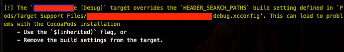 把HEADER_SEARCH_PATHS 后面的值 加$(inherited) 还有一个LIb**** 的值也加上 $(inherited) 然后xcode里面的project 不是 target 里面的 release 和 debug 的两个路径都改成NONE 然后pod install