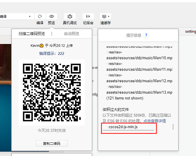 cocos creator打包的出来的js文件超过500KB,上传不了