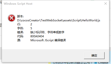 用cocos creator 打个js提示Windows Script Host 的错误。。