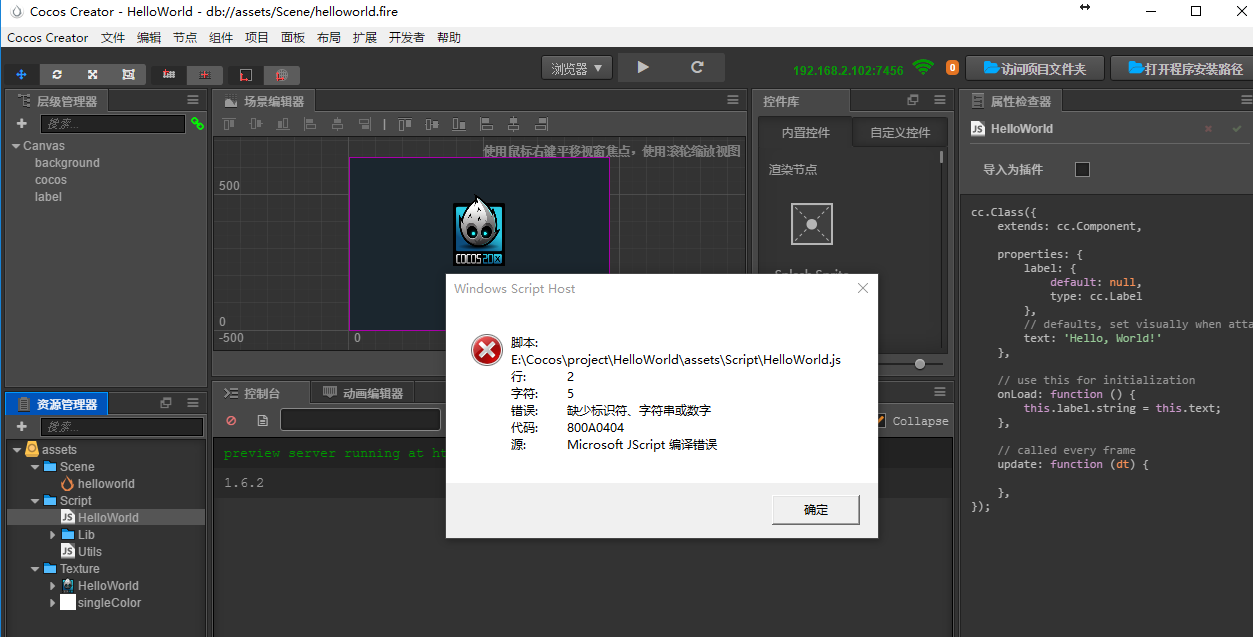 新手安装个cocos creator …新建一个hello world。。打个Helloworld.js弹出个这个。。、