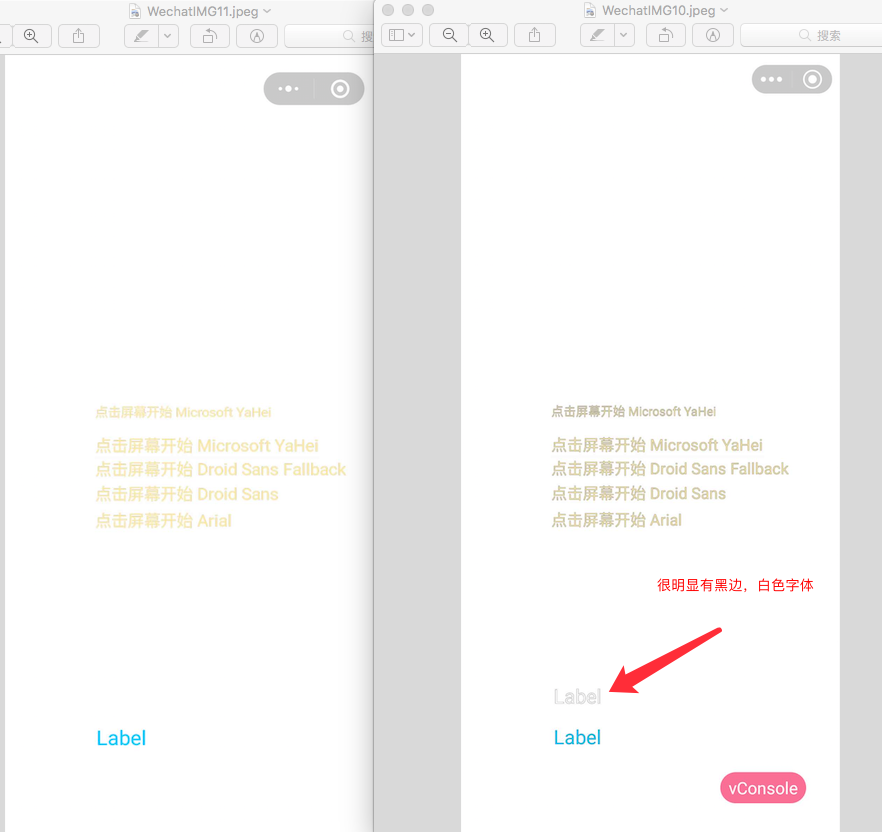 重现方式:创建label,打开模拟器,显示出来就是有黑边的字体