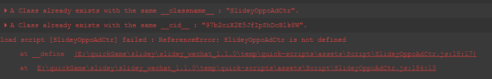 **理解:**原来脚本和新的脚本生成的cid是一样的,不知道为什么原来的脚本的cid还存在,就导致了两个重名的cid,引擎根据cid查找脚本,只导入了原来的脚本,当你引用新的脚本的时候,就会报not defined。如果是这样算不算creator的bug呀???