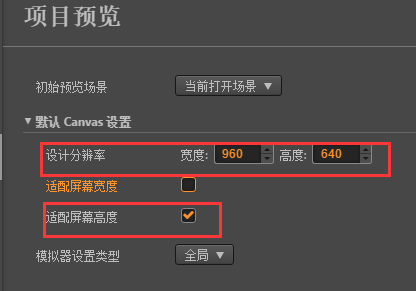 先检查你的设计分辨率是否是横屏的比例,再看看是不是勾选的适配屏幕高度