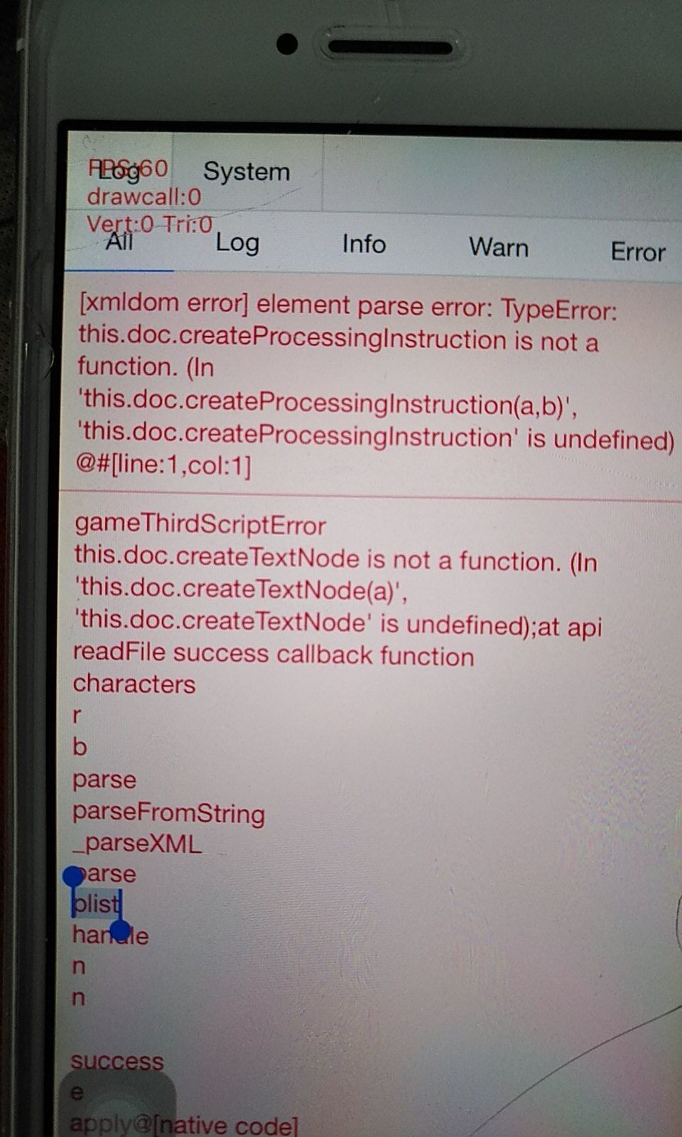 所有的Android手机、模拟器、web、IOS11以上的手机加载粒子效果都没有问题,在IOS9.1和9.3手机上加载直接黑屏,报上面截图的那个错。请问是什么问题呀~@panda