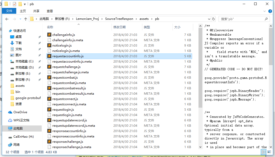如下图,pb转js后发现每个message都是一个文件