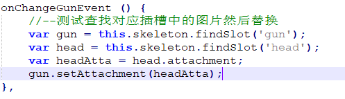 你好,请问下你是指这个方法吗;这个方法里面head是spine的json数据里面已经有的吧,通过slot名字获取到的,我想做的效果替换成一个不是从本来的数据里面找的attachment,就比如demo里面的换武器,我想从其他地方加载一个武器图片去替换他需要怎么做
