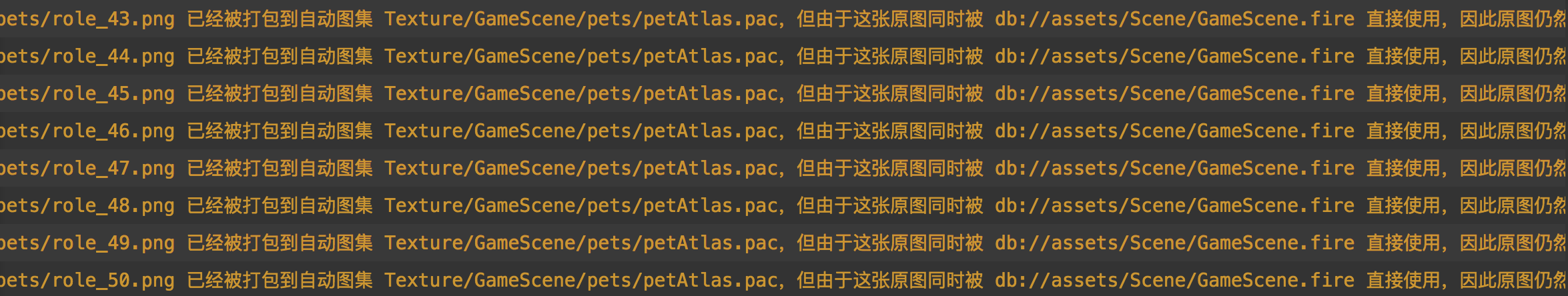 你在你的场景中直接引用了 Texture 资源,而不是 SpriteFrame 资源,这种情况下原始的 Texture 必须被保留,否则会导致 Texture 引用错误,这个 warning 是在告诉你这种情况下资源的冗余