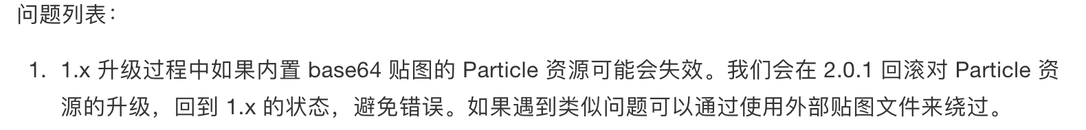 - 2.0.1里面用了粒子的还是会报错,错误信息如下: