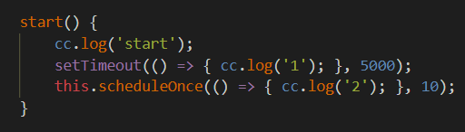 如果start()里有呼叫scheduleOnce会立即触发, 不论时间设多少