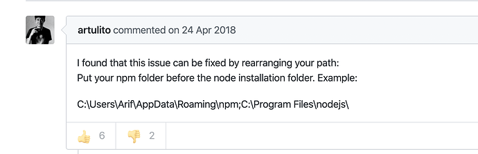 不知道是不是环境变量的问题,试试调整一下,参考: https://github.com/zkat/npx/issues/148