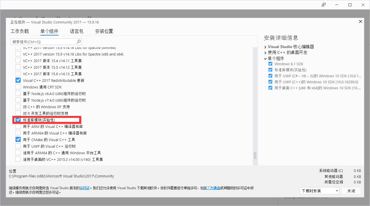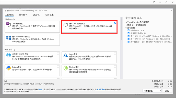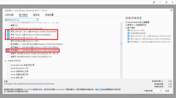 Windows 10 SDK(勾选最下面的上面的会自动勾选)