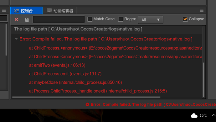 但为什么错误,有没有好心大神帮助一下。麻烦将 native.log 文件中的内容贴出来。另外,请问你使用的 Creator 是哪个版本啊?如果是 1.3 beta4 的话,windows 编译确实存在问题。需要新版本才能解决。