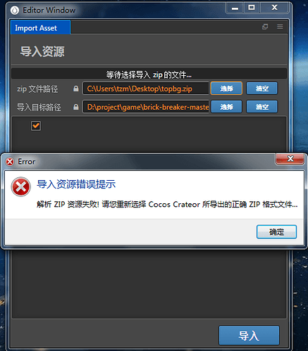 cocos creator 导入资源文件提示解析ZIP资源失败