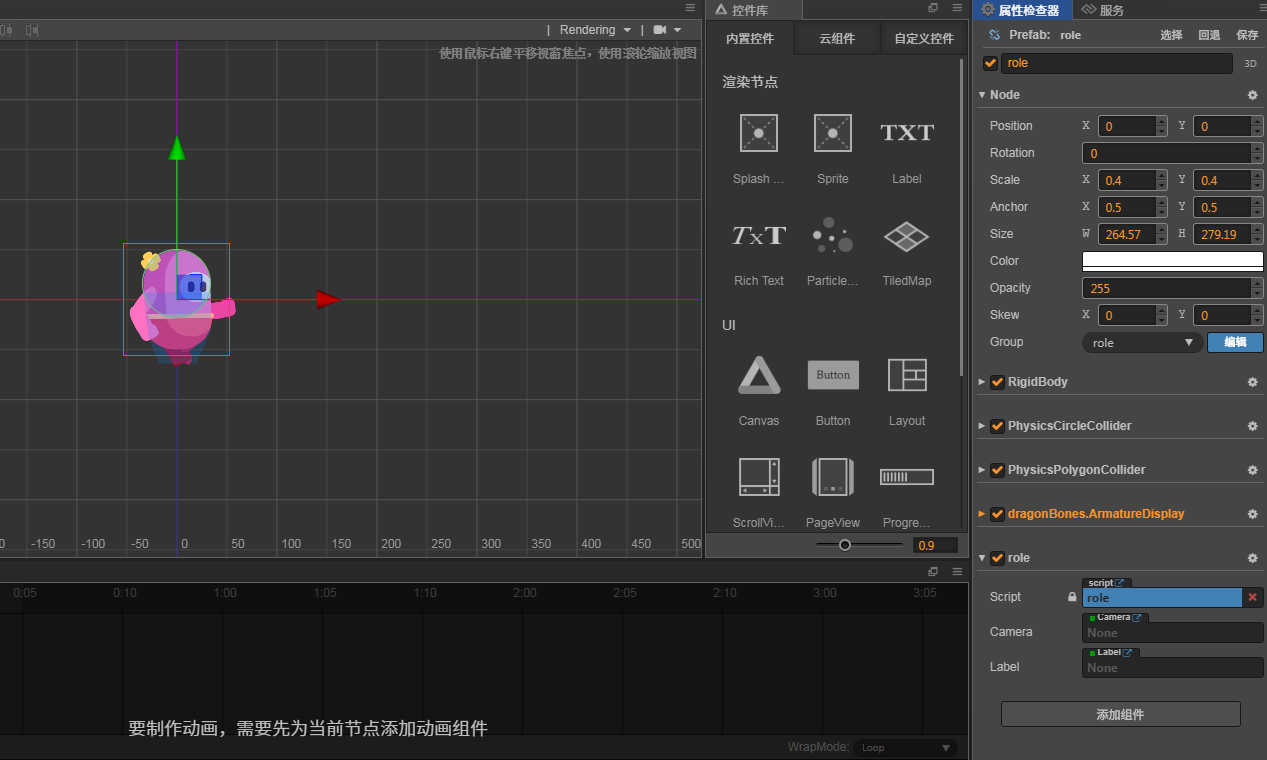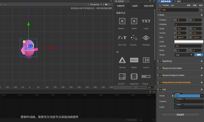 动画节点设置成刚体的子节点。刚体设置线性速度移动
