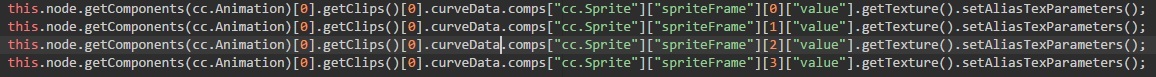 这是animation的数据吧?你怎么获取所有的spriteFrame呢?官网刚刚更新了1.1.1版本,可以动态创建帧动画,就不用一个动画一个动画的编辑了,而且你做不抗锯齿也比较方便,所以个人建议用动态创建