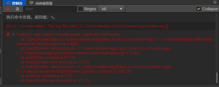 请打开 native.log 看看里面的错误信息