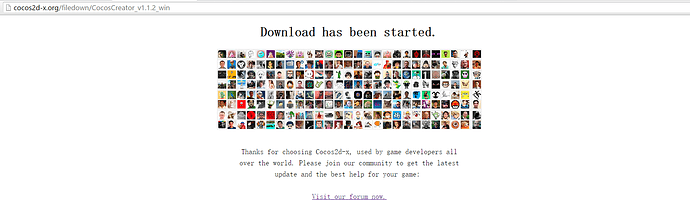 如题,进入下载界面后提示下载已开始,但是并没有下载…… http://cocos2d-x.org/filedown/CocosCreator_v1.1.2_win