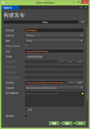 新建一个Hello World项目并打开,点击项目 - 构建发布