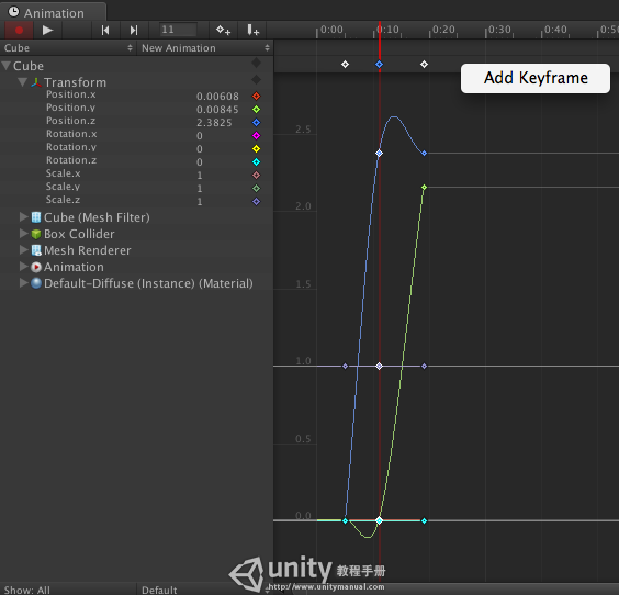 左边的属性里添加position,可以设置点,中间曲线可以拖,就和ps里的曲线还有flash里的曲线一样