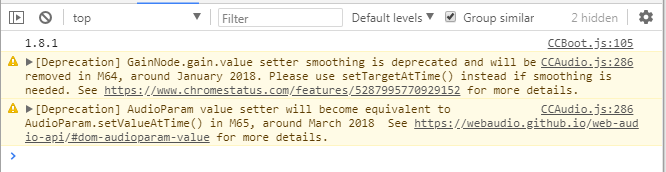 为什么在cc.audioEngine.play( cc.url.raw( path ), loop, 1.0 );的时候报这个警告,是不是audioEngine上后续要改成setTargetAtTime() 来兼容吗,我们用户需要注意些什么呢,有什么动态播放的方法绕过这个警告吗?
