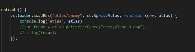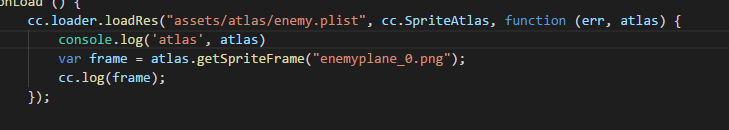 cc.loader.loadRes(“atlas/enemy”, cc.SpriteAtlas, function (err, atlas) {
