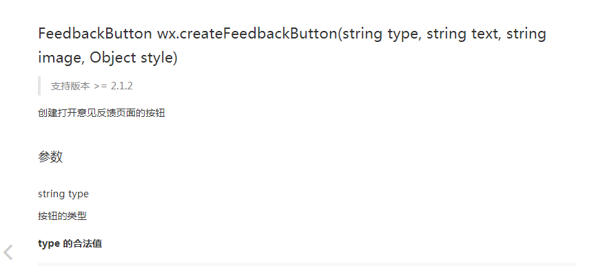 在小游戏API文档就有了。https://developers.weixin.qq.com/minigame/dev/document/open-api/feedback/wx.createFeedbackButton.html