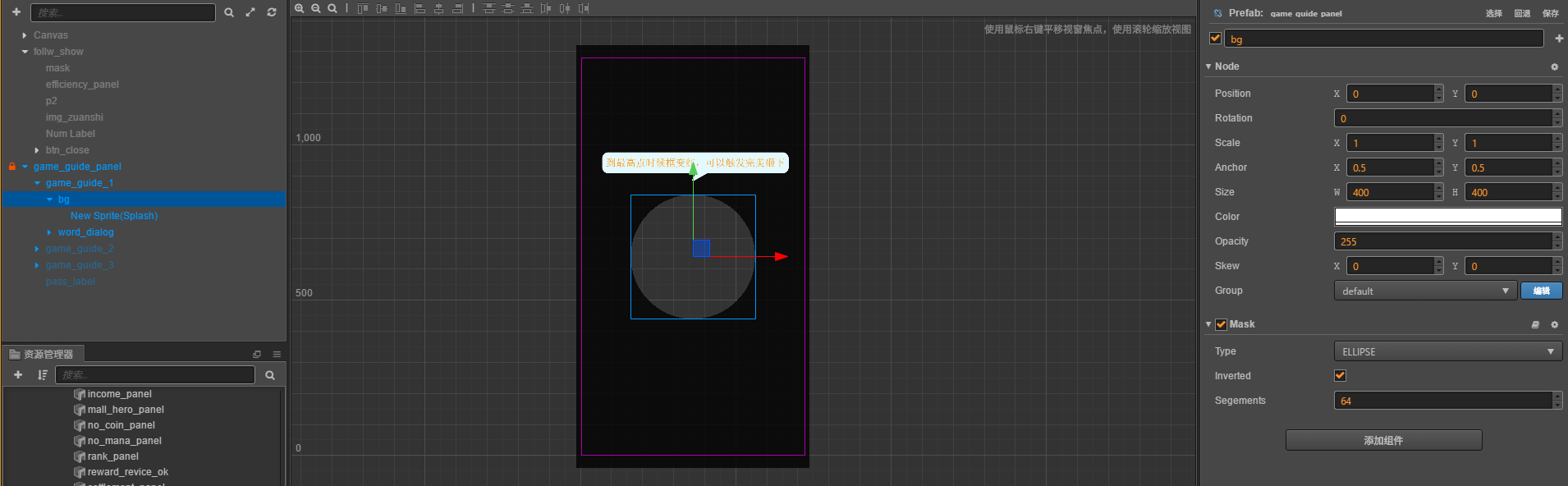 如图:在一个预制体加上反向遮罩,当场景加载这个预制体时候,遮罩显示不出来
