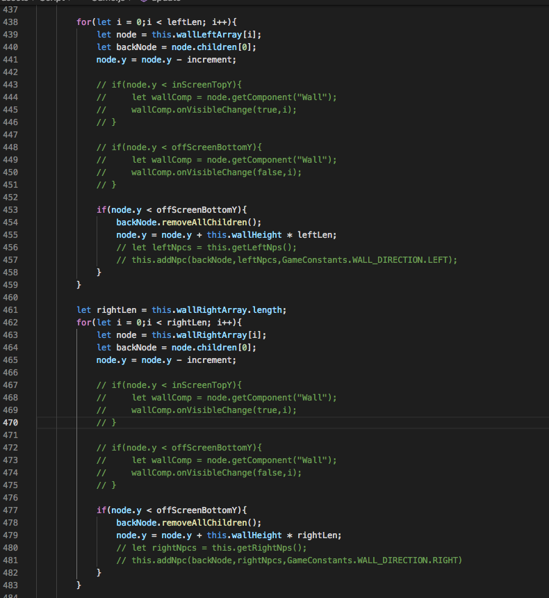 update没有复杂的逻辑和计算,以下是我的update的逻辑,只有墙壁的坐标计算,遇到同类的问题的帮忙顶一下帖子,各位引擎相关人员帮忙给看下。