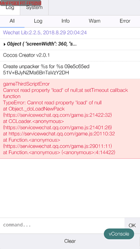 cocos creator2.0 微笑小程序 真机报错cannot read property 'load' of null