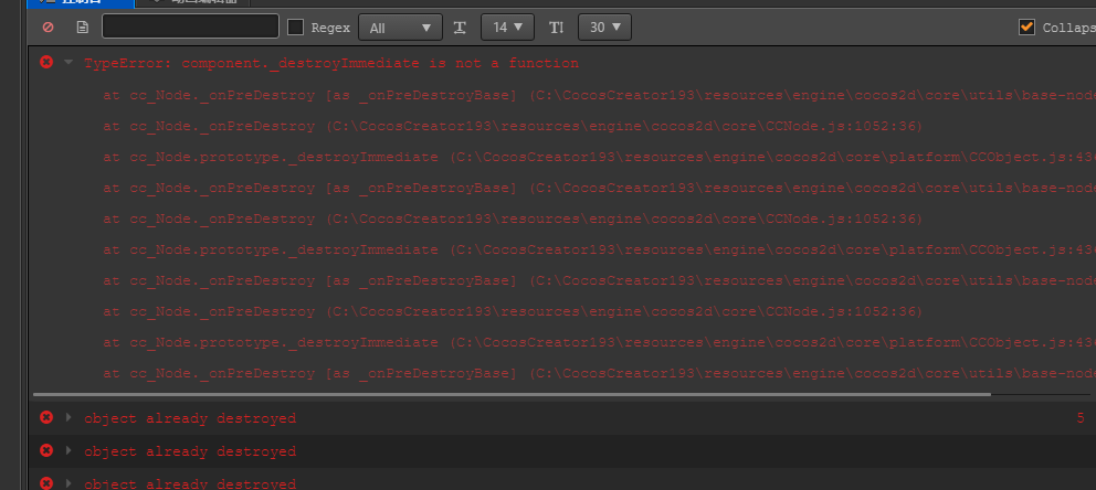 TypeError: component._destroyImmediate is not a function,什么场景也打不开了,崩了